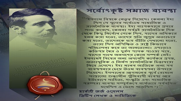 "ইসলাম বিশ্বকে নেতৃত্ব দিয়েছে। কেননা ইহা ছিল সে যুগের সর্বোত্তম সামাজিক ও রাজনৈতিক ব্যবস্থা। ইহা ব্যাপকহারে প্রসার লাভ করেছে, কেননা সর্বত্রই রাজনৈতিক দিক থেকে কিছু নির্বোধ লোক ছিল, যাদের অধিকার হনন করা হতো, তাদের প্রতি জুলুম অত্যাচার করা হতো, তাদেরকে ভয় ভীতি দেখানো হতো, তারা ছিল অশিক্ষিত ও রাষ্ট্র কিভাবে পরিচালনা করে তা জানতোনা। এছাড়াও কতিপয় স্বৈর ও দুর্বল শাসক পাওয়া যায়, যাদের সাথে জনগণের কোন সম্পর্ক নেই। ইসলামই বিশ্বের জন্য অদ্যবদি কার্যকর প্রশস্ত, অত্যাধুনিক ও নির্মল রাজনৈতিক চিন্তাধারা নিয়ে এসেছে। ইহা মানব জাতিকে অন্য সব ব্যবস্থপনার চেয়ে উত্তম ব্যবস্থপনা উপহার দিয়েছে। ইসলামের আগমনের পূর্বে রোমান সাম্রাজ্যে শুল্কাধীন পুঁজিবাদী ব্যবস্থা আর ইউরোপে সাহিত্য, সংস্কৃতি এবং সামাজিক পরম্পরা ব্যবস্থা সম্পূর্ণরূপে ব্যর্থতায় পর্যবসিত হয়েছিল ও ভেঙ্গে পড়েছিল "।