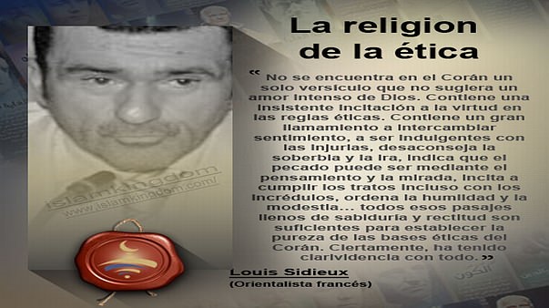 “No se encuentra en el Corán un solo versículo que no sugiera un amor intenso de Dios. Contiene una insistente incitación a la virtud en las reglas éticas. Contiene un gran llamamiento a intercambiar sentimiento, a ser indulgentes con las injurias, desaconseja la soberbia y la ira, indica que el pecado puede ser mediante el pensamiento y la mirada, incita a cumplir los tratos incluso con los incrédulos, ordena la humildad y la modestia… todos esos pasajes llenos de sabiduría y rectitud son suficientes para establecer la pureza de las bases éticas del Corán. Ciertamente, ha tenido clarividencia con todo.”