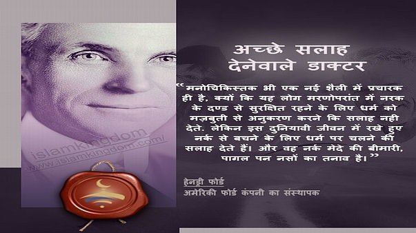 मनोचिकिस्तक भी एक नई शैली में प्रचारक ही है, क्यों कि यह लोग मरणोपरांत में नरक के दण्ड से सुरक्षित रहने के लिए धर्म को मज़बुती से अनुकरण करने कि सलाह नही देते. लेकिन इस दुनियावी जीवन में रखे हुए नर्क से बचने के लिए धर्म पर चलने की सलाह देते हैं। और वह नर्क मेदे की बीमारी, पागल पन नसों का तनाव है।