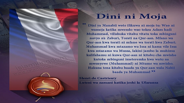 “Dini ya Manabii wote ilikuwa ni moja tu: Wao ni wamoja katika mwendo wao tokea Adam hadi Muhammad, vilishuka vitabu vitatu toka mbinguni navyo ni: Zaburi, Torati na Qur-aan. Mfano wa Qur-aan kwa torati ni mfano wa torati kwa Zaburi. Muhammad kwa mtazamo wa Issa ni kama vile Issa kwa mtazamo wa Mussa, lakini jambo la muhimu kulifahamu ni kuwa Qur-aan ni kitabu cha mwisho kutoka mbinguni imeteremka kwa watu na mwenyewe (Muhammad) ni Mtume wa mwisho. Hakuna tena kitabu baada ya Qur-aan wala Nabii baada ya Muhammad.”